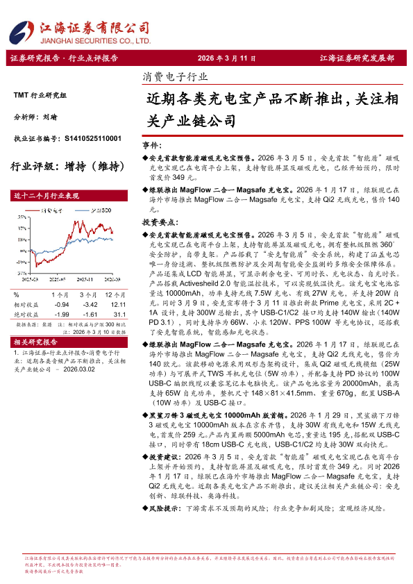 【江海证券】【202603】消费电子行业:近期各类充电宝产品不断推出,关注相关产业链公司-3页