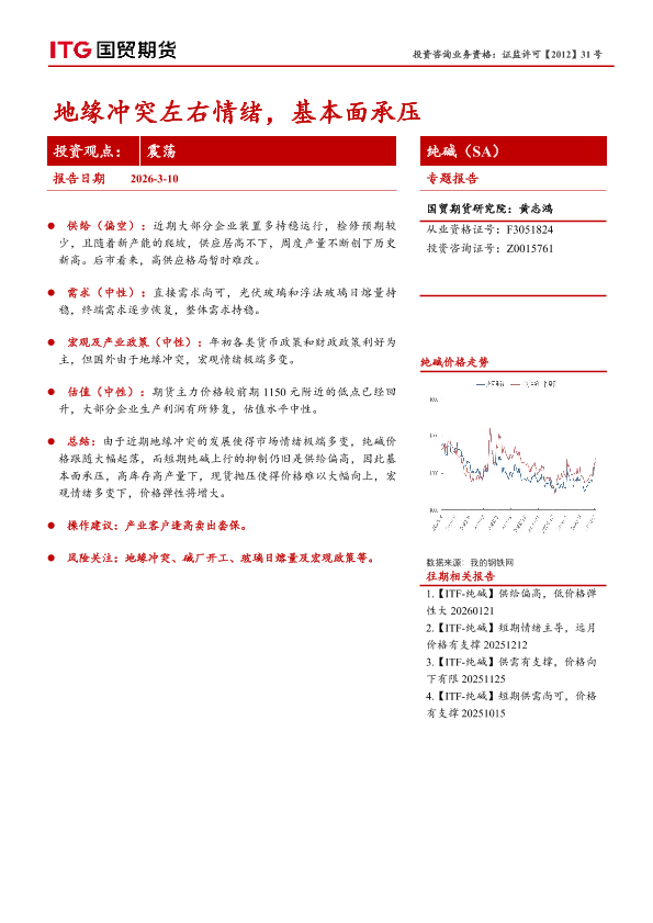 需求平稳 纯碱 供给过剩 套保建议 地缘冲突
