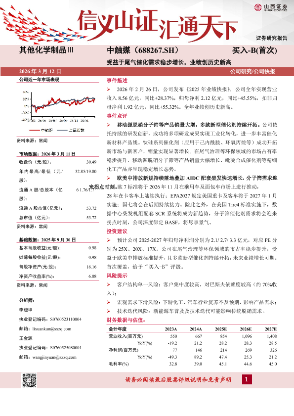 【山西证券】【202603】受益于尾气催化需求稳步增长,业绩创历史新高-5页