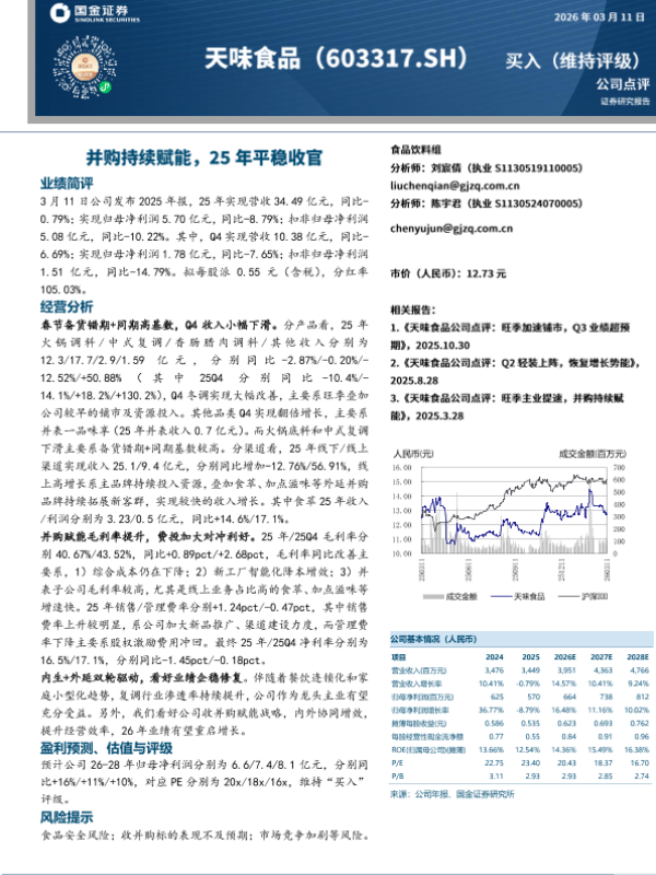 投资评级 财报 调味品 行业研究 并购
