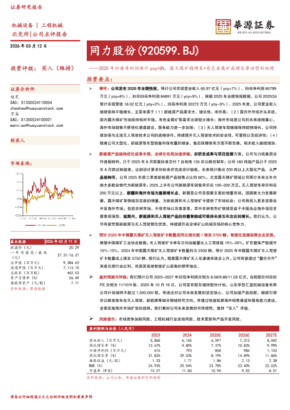 【华源证券】【202603】2025年归母净利润预计yoy+8%,露天煤矿稳增长+有色金属矿高增长带动营利双增-3页