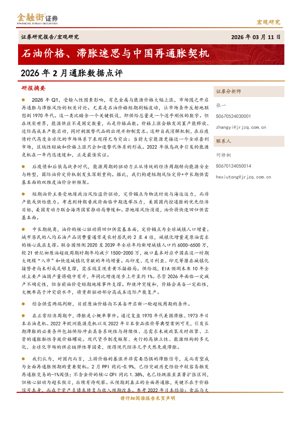 【金融街证券】【202603】2026年2月通胀数据点评:石油价格、滞胀迷思与中国再通胀契机-8页