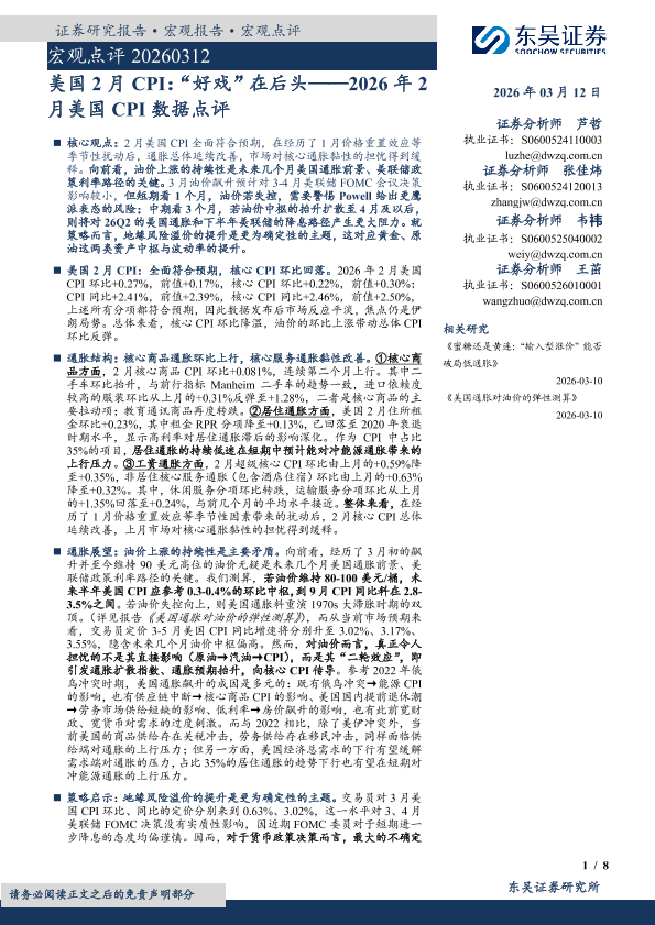 【东吴证券】【202603】2026年 2月美国 CPI数据点评-8页
