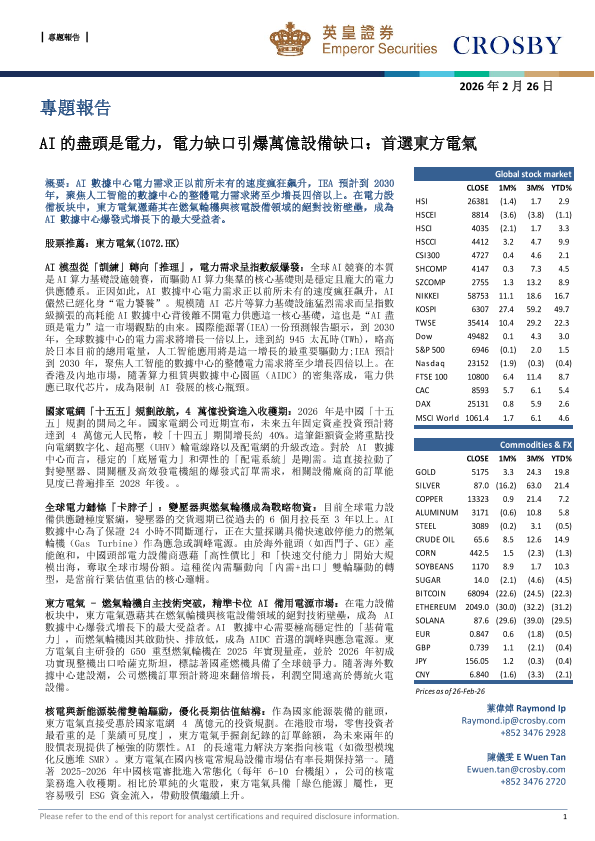 【CROSBY&英皇证券有限公司&高誠證券有限公司】【202602】AI的盡頭是電力,電力缺口引爆萬億設備缺口:首選東方電氣-10页