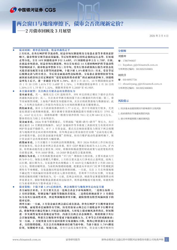 【银河证券】【202603】两会窗口与地缘摩擦下,债市会否出现新定价?——2月债市回顾及3月展望-18页