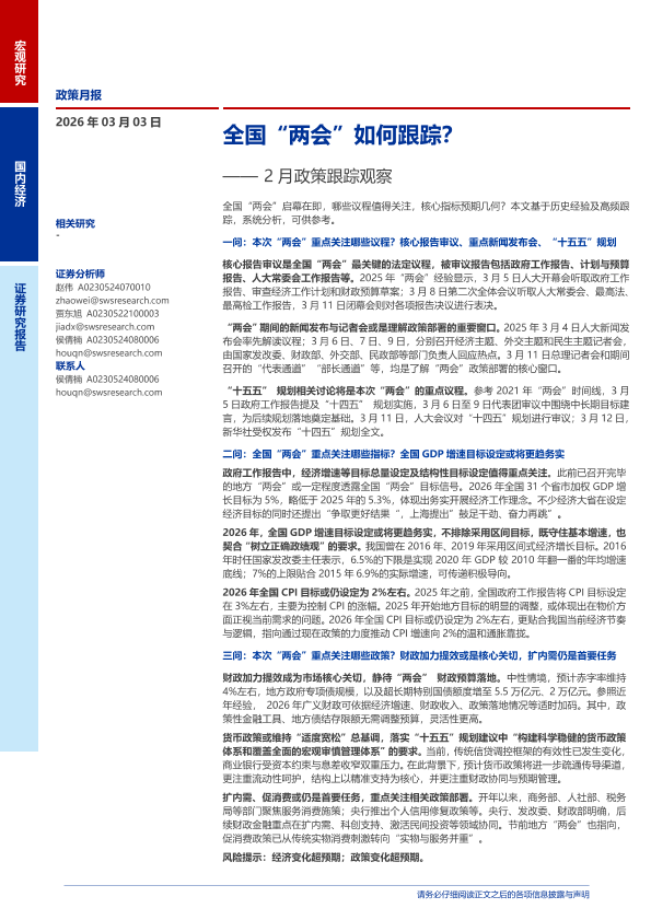 【申万宏源】【202603】全国“两会”如何跟踪?——2月政策跟踪观察-14页