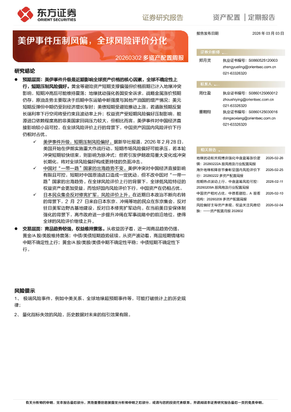 【东方证券】【202603】美伊事件压制风偏,全球风险评价分化-11页