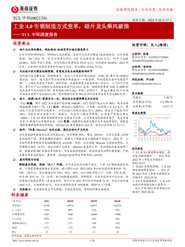 【浙商证券】【20230217】TCL中环深度报告:工业40引领制造方式变革,硅片龙头乘风破浪-38页