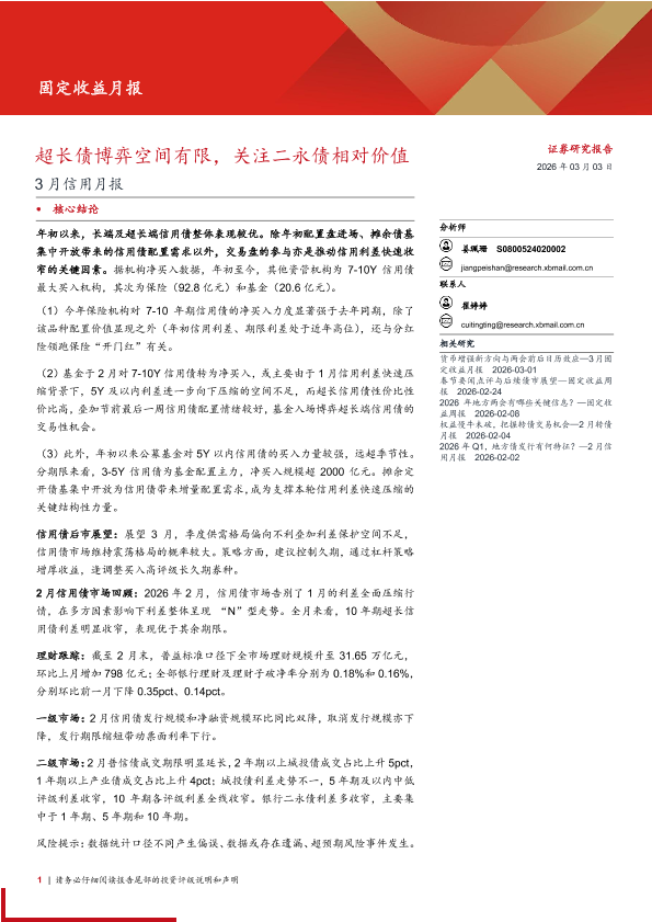 【西部证券】【202603】超长债博弈空间有限,关注二永债相对价值-20页
