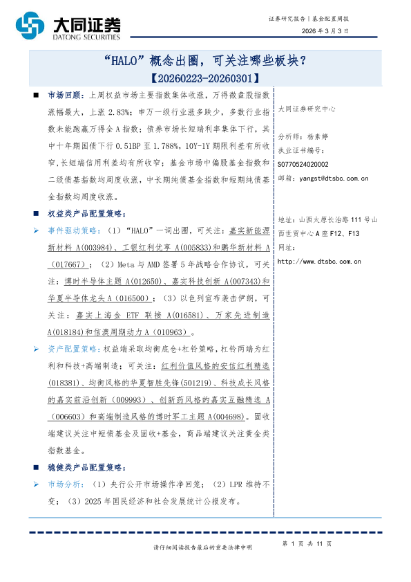 【大同证券研究中心】【202603】“HALO”概念出圈,可关注哪些板块?-11页