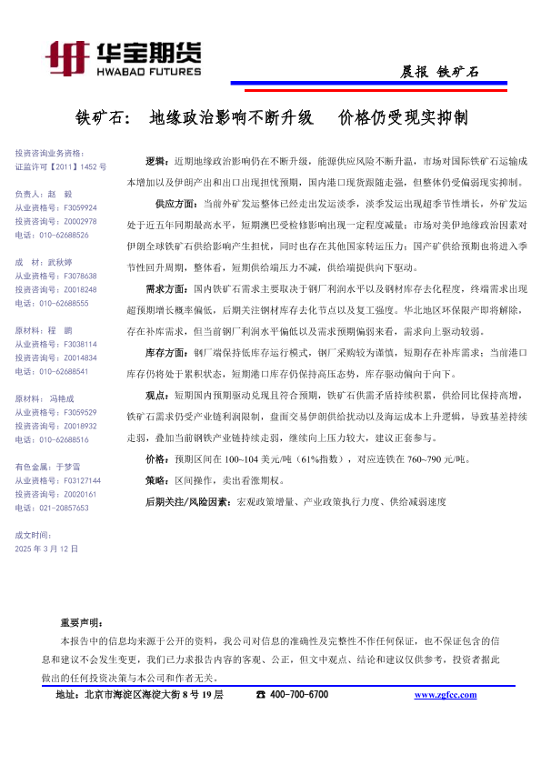 【华宝期货】【202503】铁矿石_地缘政治影响不断升级_价格仍受现实抑制-1页