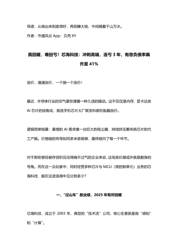 【市值风云 App】【2025】真回暖,难扭亏!芯海科技:冲刺高端,连亏 3年,有息负债率飙升至 41%-13页