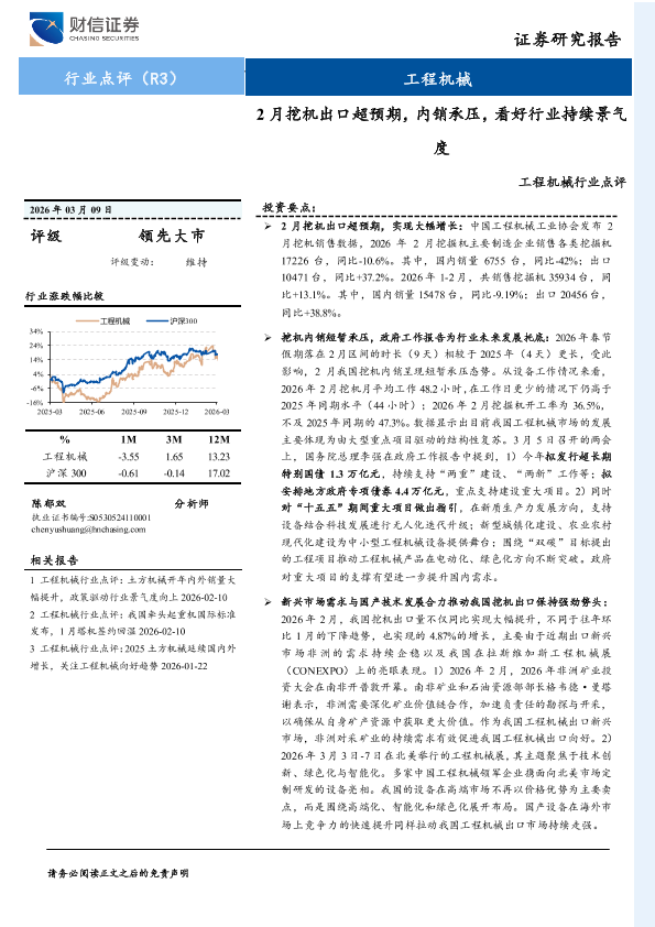 【财信证券】【202603】工程机械行业点评_2月挖机出口超预期_内销承压_看好行业持续景气度-3页