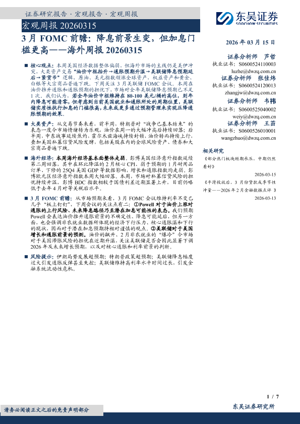 【东吴证券】【202603】3月FOMC前瞻:降息前景生变,但加息门槛更高——海外周报 20260315-7页