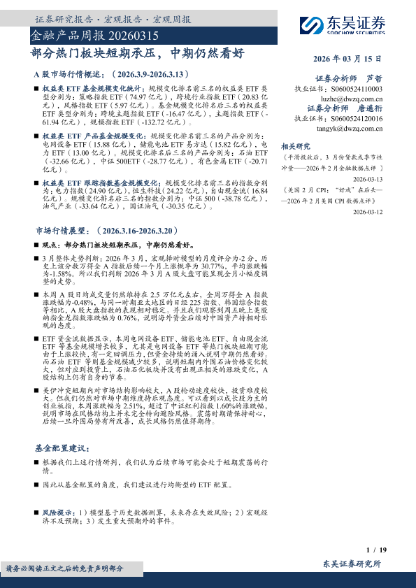 【东吴证券】【202603】金融产品周报 20260315-19页