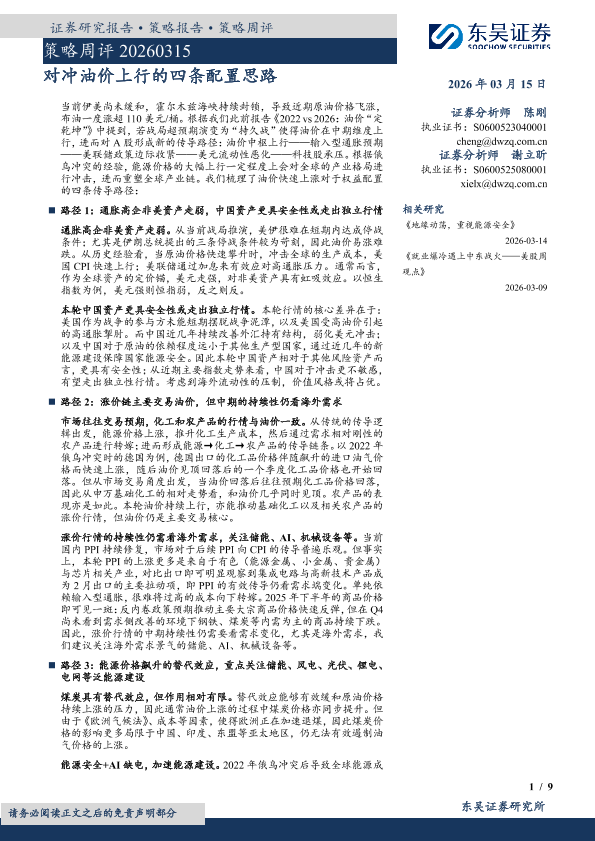 【东吴证券】【202603】对冲油价上行的四条配置思路-9页