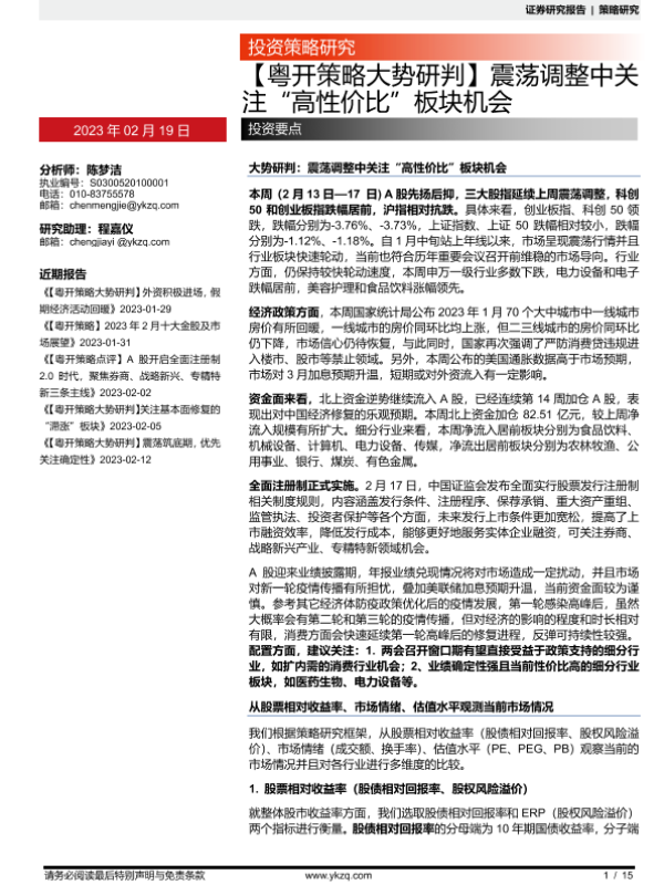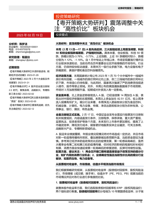 【粤开证券】【20230219】【粤开策略大势研判】震荡调整中关 注“高性价比”板块机会-15页