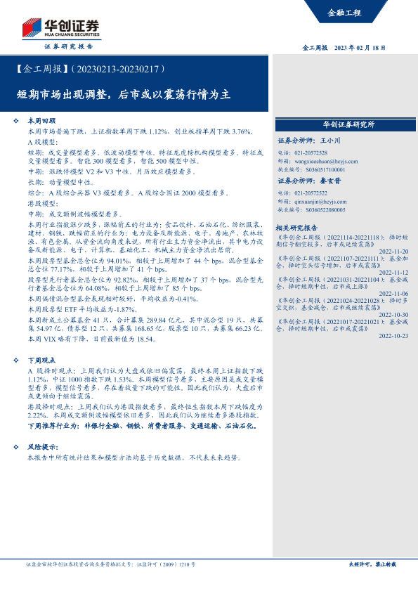 【华创证券】【20230218】【金工周报】短期市场出现调整,后市或以震荡行情为主-26页