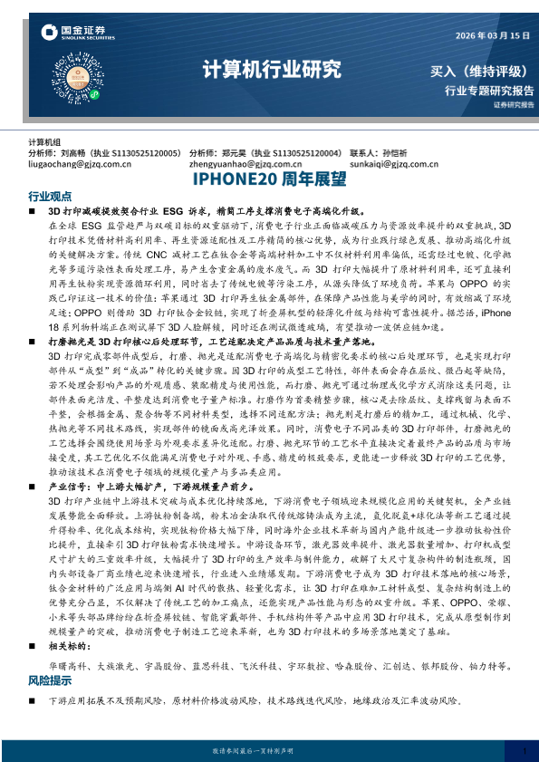 消费电子 ESG 智能制造 3D打印 钛合金