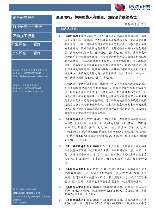 【信达证券】【202603】原油周报:伊朗局势未有缓和,国际油价继续高位-29页