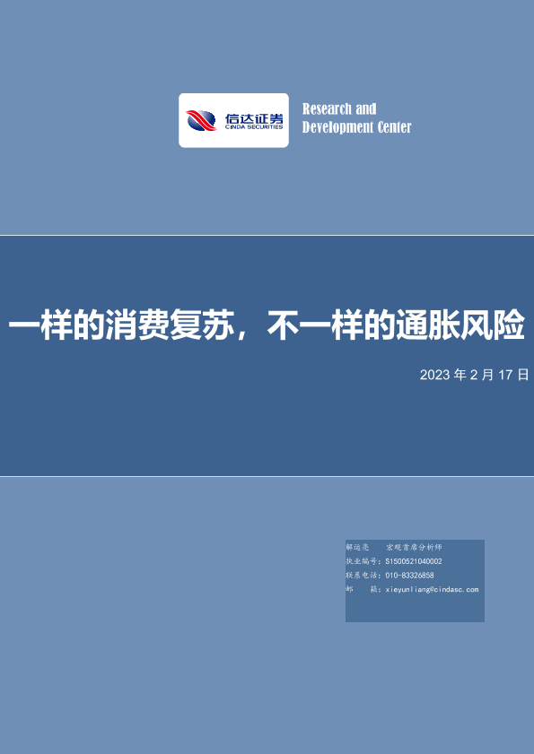 【信达证券】【20230217】一样的消费复苏,不一样的通胀风险-28页