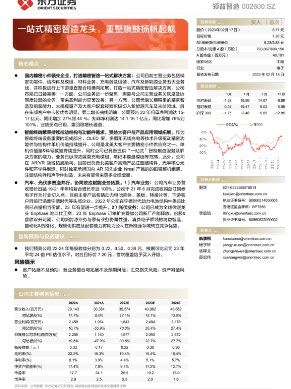 投资建议 新能源 消费电子 精密制造 财务分析