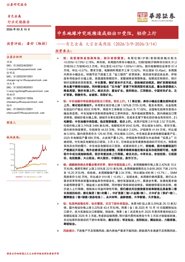 【华源证券】【202603】有色金属大宗金属周报(2026/3/9-2026/3/14)-16页