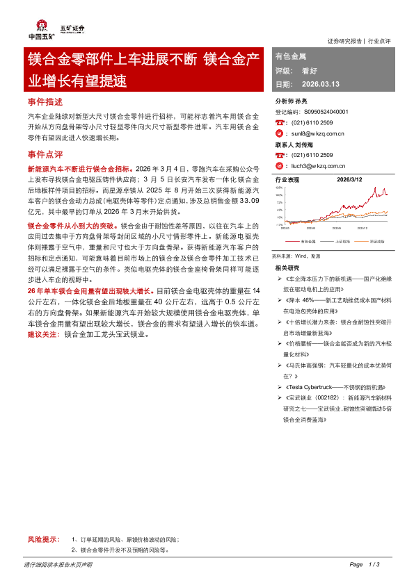 【五矿证券】【2026】镁合金零部件上车进展不断 镁合金产业增长有望提速-3页