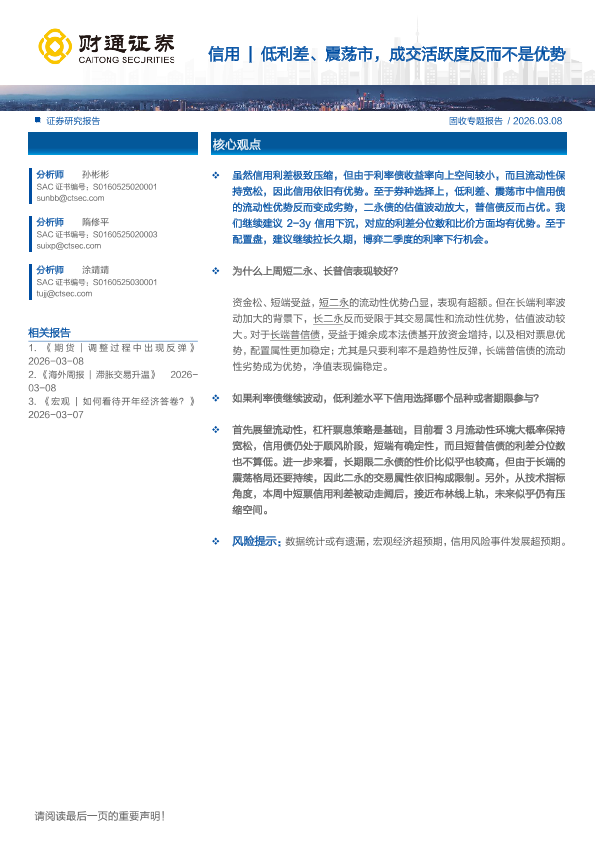 【财通证券】【202603】信用|低利差、震荡市,成交活跃度反而不是优势-17页