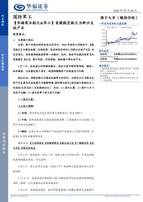 【华福证券】【202603】【华福商业航天&军工】首提航空航天为新兴支柱产业-17页