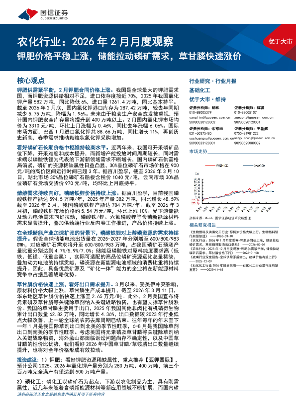 【国信证券】【202603】农化行业:2026年2月月度观察,钾肥价格平稳上涨,储能拉动磷矿需求,草甘膦快速涨价-29页
