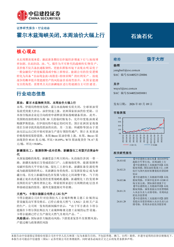 【中信建投证券】【202603】霍尔木兹海峡关闭,本周油价大幅上行-21页