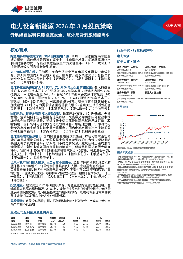 【国信证券】【202603】优于大市 电力设备新能源 2026年 3月投资策略-24页