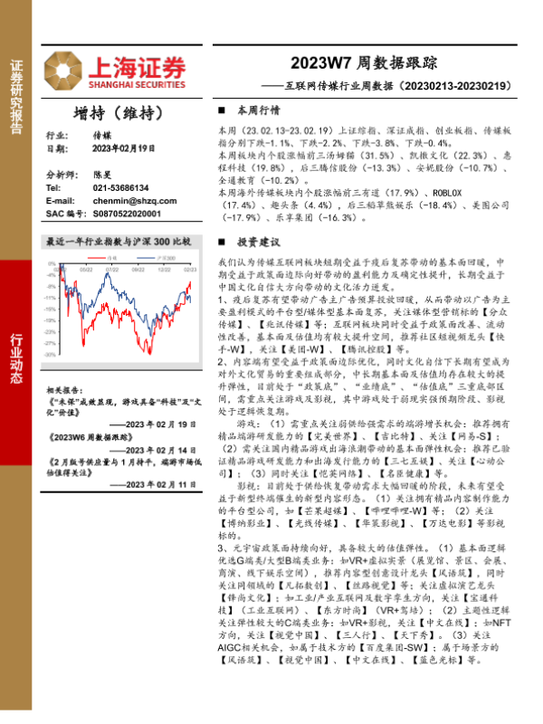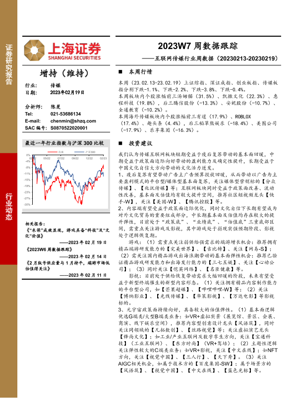 【上海证券】【20230219】互联网传媒行业周数据:2023W7周数据跟踪-22页