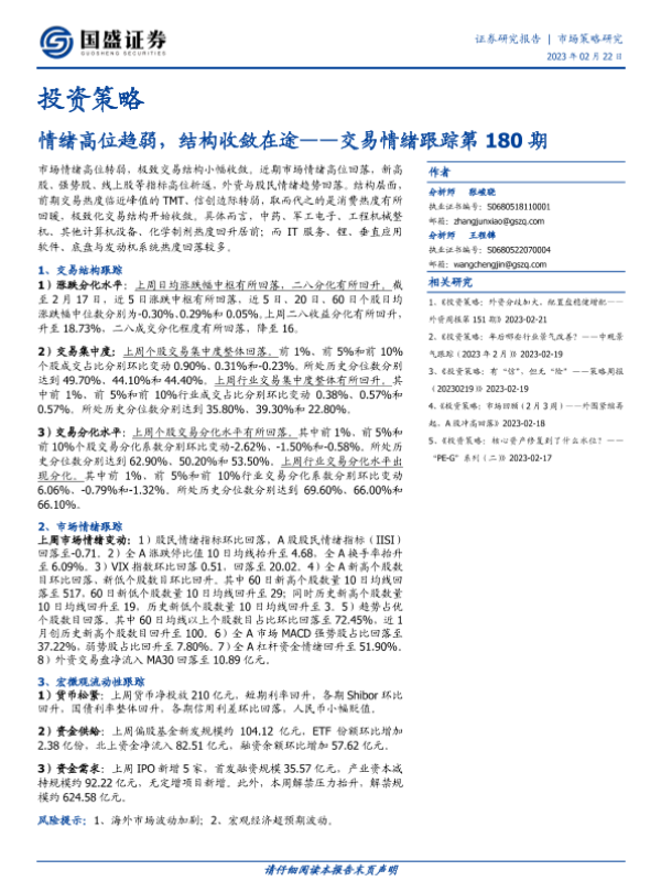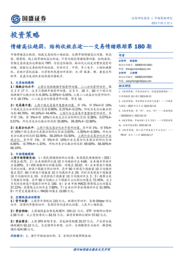 【国盛证券】【20230222】交易情绪跟踪第180期:情绪高位趋弱,结构收敛在途-16页