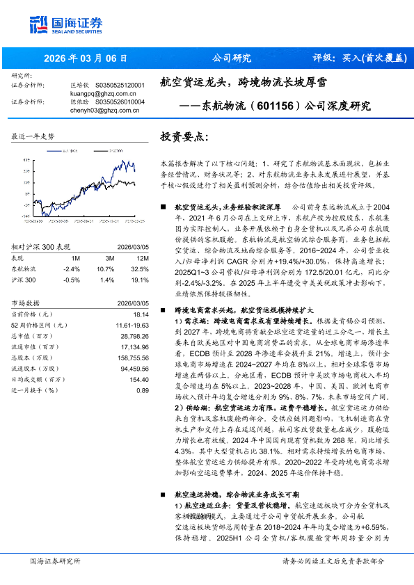 【国海证券】【202603】东航物流(601156)公司深度研究:航空货运龙头,跨境物流长坡厚雪-27页