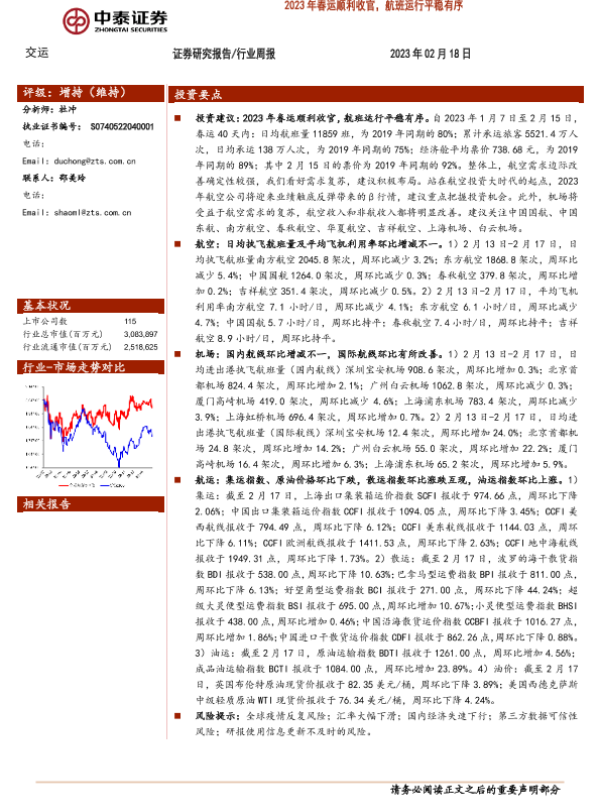 【中泰证券】【20230218】交运行业周报:2023年春运顺利收官,航班运行平稳有序-36页