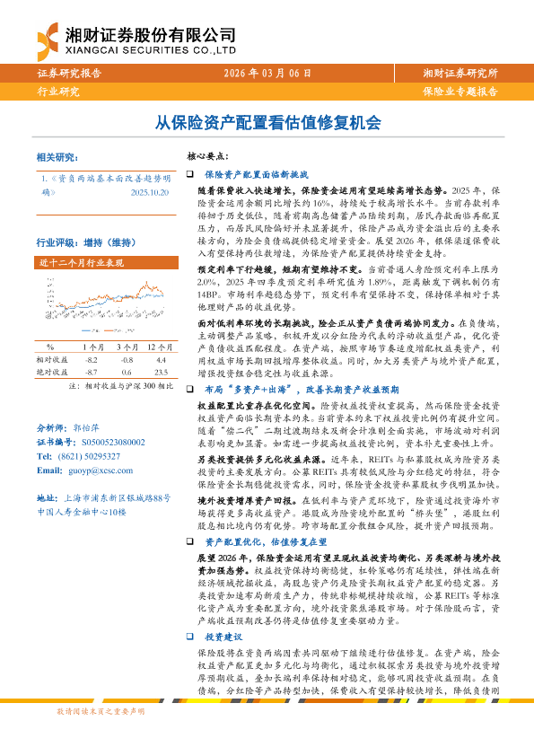 【湘财证券】【202603】从保险资产配置看估值修复机会-22页