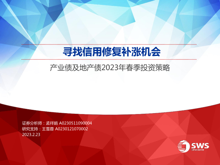 【申万宏源】【20230223】产业债及地产债2023年春季投资策略:寻找信用修复补涨机会-42页