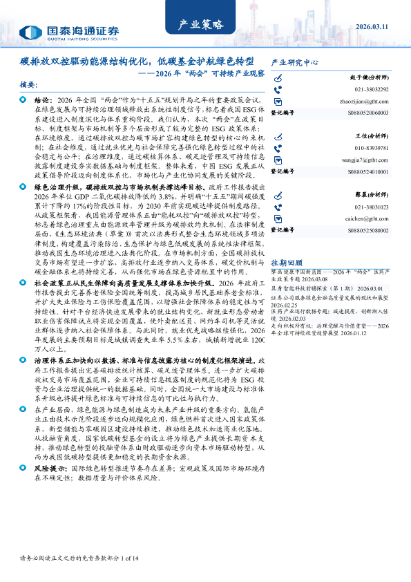 【国泰海通证券】【202603】碳排放双控驱动能源结构优化,低碳基金护航绿色转型——2026年“两会”可持续产业观察-14页