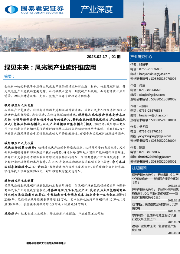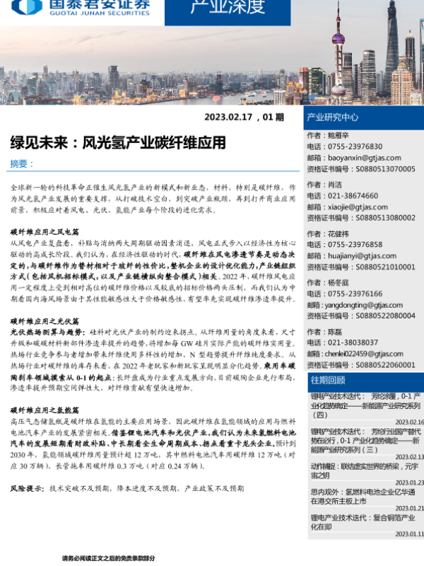 【国泰君安证券】【20230217】产业深度01期:绿见未来,风光氢产业碳纤维应用-35页