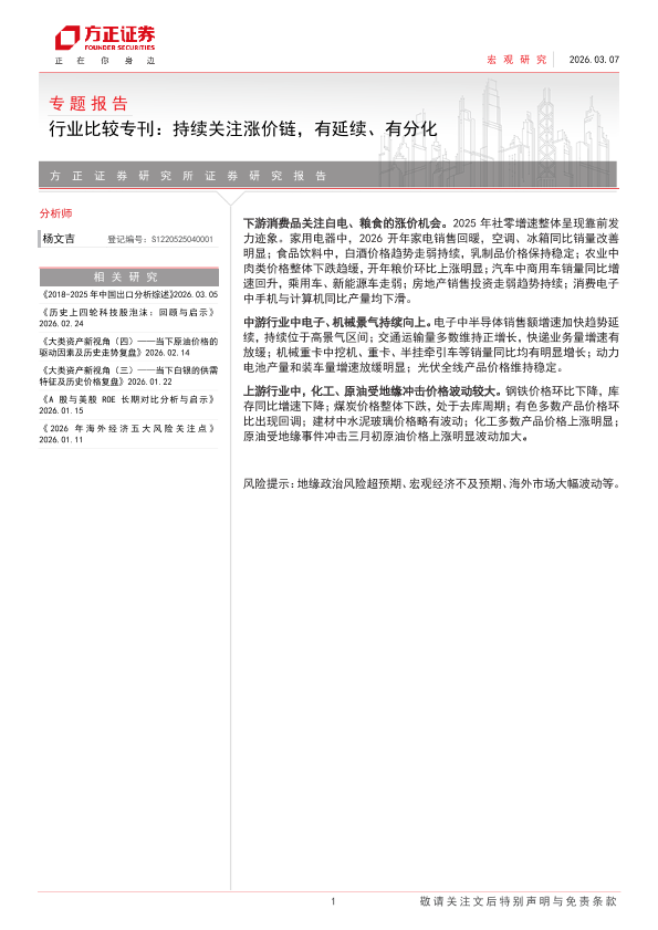 【方正证券】【202603】专题报告 行业比较专刊:持续关注涨价链,有延续、有分化-17页