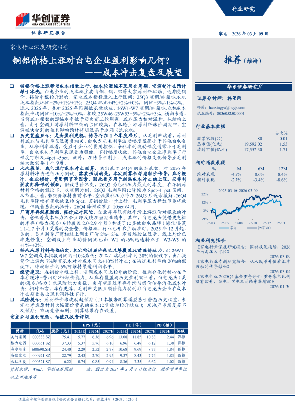 【华创证券】【202603】铜铝价格上涨对白电企业盈利影响几何?——成本冲击复盘及展望-28页