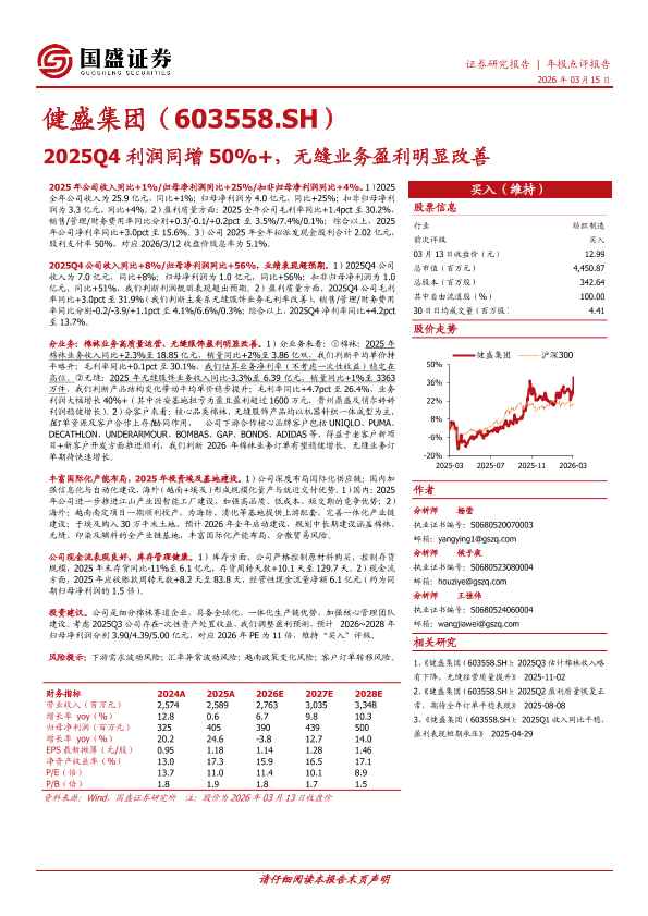 【国盛证券】【202503】健盛集团-603558.SH-2025Q4利润同增50%+无缝业务盈利明显改善-3页