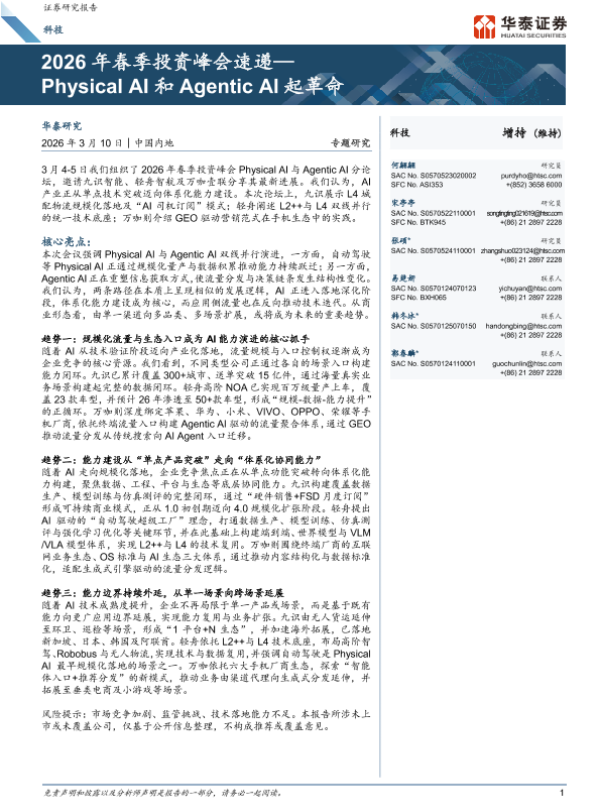 【华泰证券】【202603】2026年春季投资峰会速递— Physical AI和 Agentic AI起革命-15页