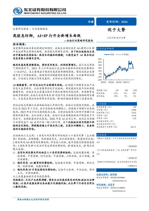 高股息 IP开发 教育出版 人工智能 出版行业