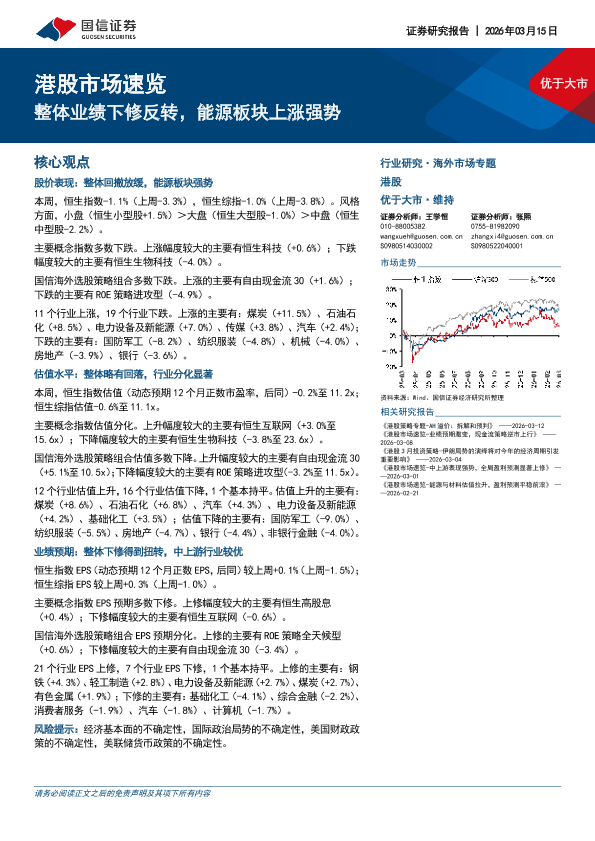 【国信证券】【202603】优于大市 港股市场速览 整体业绩下修反转,能源板块上涨强势-16页