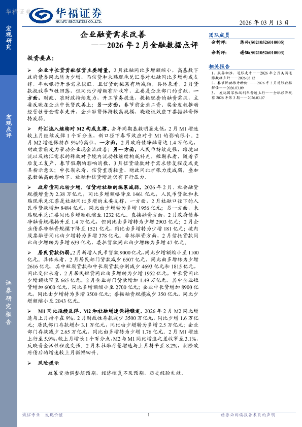 【华福证券】【202602】企业融资需求改善——2026年 2月金融数据点评-6页
