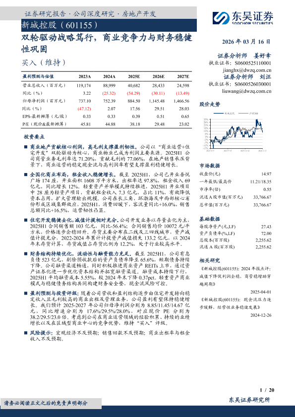 投资评级 商业运营 财务稳健 房地产 双轮驱动