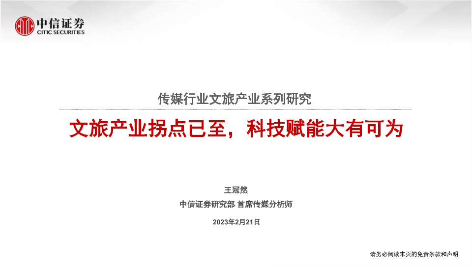 【中信证券】【20230221】传媒行业文旅产业系列研究:文旅产业拐点已至,科技赋能大有可为-40页